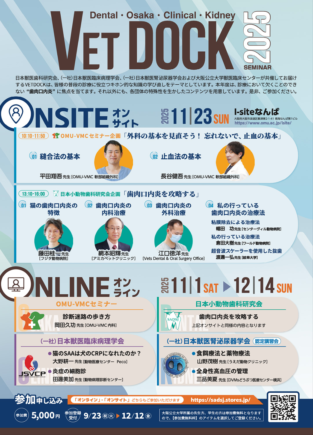 日本獣医歯科研究会、日本獣医臨床病理学会、日本獣医腎泌尿器学会および大阪公立大学獣医臨床センターが共催してお届けするVETDOCKは、 皆様の普段の診療に役立つキホン的な知識の学び直しをテーマとしています。本年度は、診療において欠くことのできない “歯肉口内炎” に焦点を当てます。それ以外にも、各団体の特殊性を生かしたコンテンツを用意しています。是非、ご参加ください。